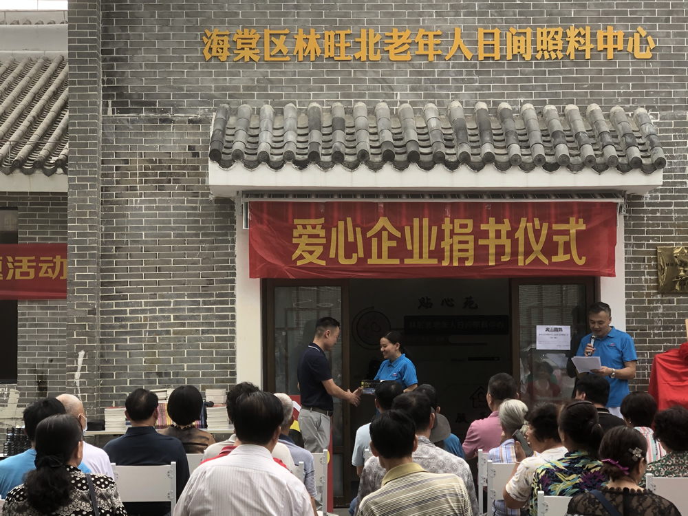 三亞綠盾環(huán)??萍加邢薰娟P(guān)愛老人,熱心公益,為為海棠區(qū)林旺北老年人日間照料中心捐贈書籍。